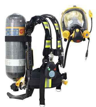 消防员或抢险救灾人员使用的一种呼吸器,改呼吸器利用面罩与佩戴者面部周边密合,使佩戴者呼吸器官、眼睛和面部与外界染毒空气或缺氧环境完全隔离,具有自带压缩空气源供给佩戴者呼吸所用的洁净空气,呼出的气体直接排入大气中,任一呼吸过程,面罩内的压力均大于环境压力。